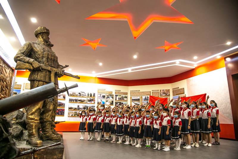 7月24日上午,懷著無比激動和崇敬的心情,學生們有序進入部隊旅史紀念館。