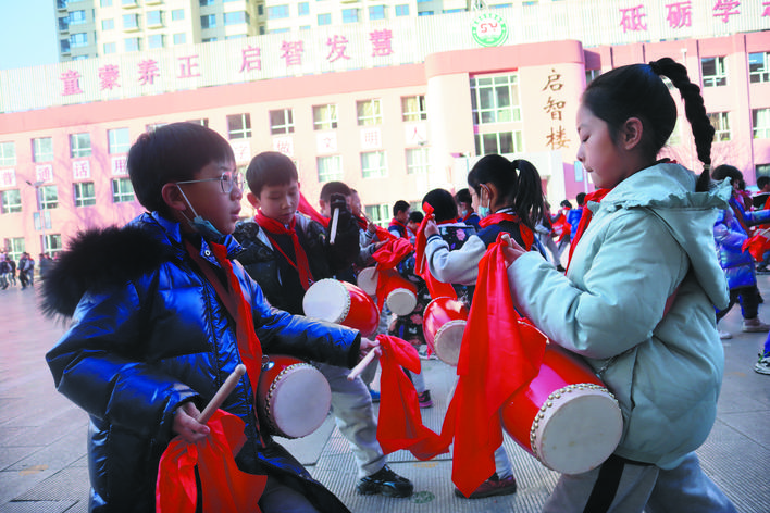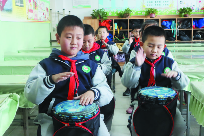 作為一種歷史悠久的傳統(tǒng)民族藝術(shù),腰鼓節(jié)奏歡快,鼓聲清脆悅耳。由孩子們展示這種藝術(shù)形式,更能張揚(yáng)出獨(dú)特的藝術(shù)性,同時(shí)練招式、講秩序,長(zhǎng)知識(shí)、練思辨。由來(lái)自全校的100名學(xué)生組成的腰鼓隊(duì)是市實(shí)驗(yàn)小學(xué)精心打造的一支規(guī)模相對(duì)較大的隊(duì)伍。董海燕老師是腰鼓隊(duì)的三位帶隊(duì)老師之一,還兼任198班的班主任,緊張的課堂教學(xué)之余,還要積極參與到教孩子們打腰鼓的第二課堂活動(dòng)中,董老師說(shuō),下一步,學(xué)校準(zhǔn)備打造千人腰鼓隊(duì),讓更多的孩子了解和掌握打腰鼓的技巧、技法,更好地弘揚(yáng)中華民族的傳統(tǒng)藝術(shù)。