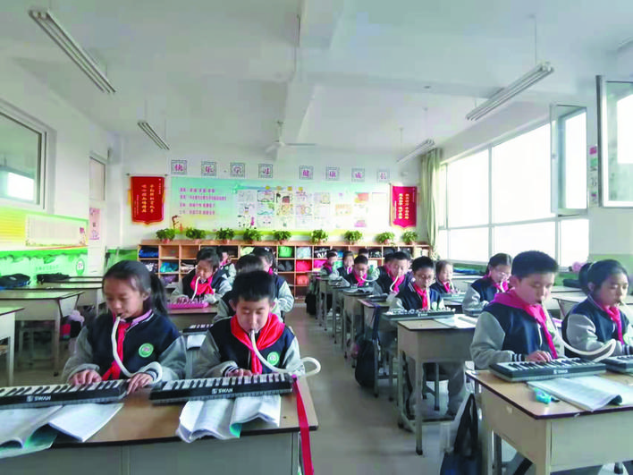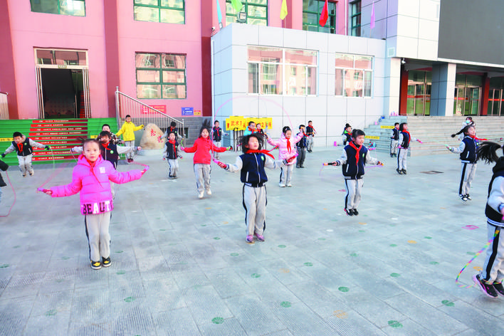 冬日暖陽(yáng)下,忻州市實(shí)驗(yàn)小學(xué)校園里一派生機(jī)勃勃的景象。武術(shù)訓(xùn)練場(chǎng)上,孩子們正在認(rèn)真扎馬步、練拳術(shù),一招一式打得虎虎生威,眼睛里閃爍著堅(jiān)毅和自信的光芒。百人腰鼓隊(duì)排著整齊的隊(duì)伍,伴著音樂(lè)的節(jié)奏不停變換著步伐,鼓槌上的紅綢子上下舞動(dòng),看得人眼花繚亂?;ㄊ交@球挑戰(zhàn)籃球極限,展示籃球技術(shù)和表演的完美結(jié)合?;犹K中,孩子們?cè)诃h(huán)擺的繩索中做著各種跳躍動(dòng)作……操場(chǎng)上,熱火朝天,教學(xué)樓里,每一間教室里都散發(fā)著濃濃的趣味性?!耙黄惨晦?,書(shū)寫(xiě)堂堂正正中國(guó)字”“編程要注意邏輯關(guān)系”“三原色是哪些顏色呢?”……這是市實(shí)驗(yàn)小學(xué)每周三開(kāi)展的第二課堂綜合實(shí)踐活動(dòng),也是孩子們最興奮最高興的校園時(shí)光。
