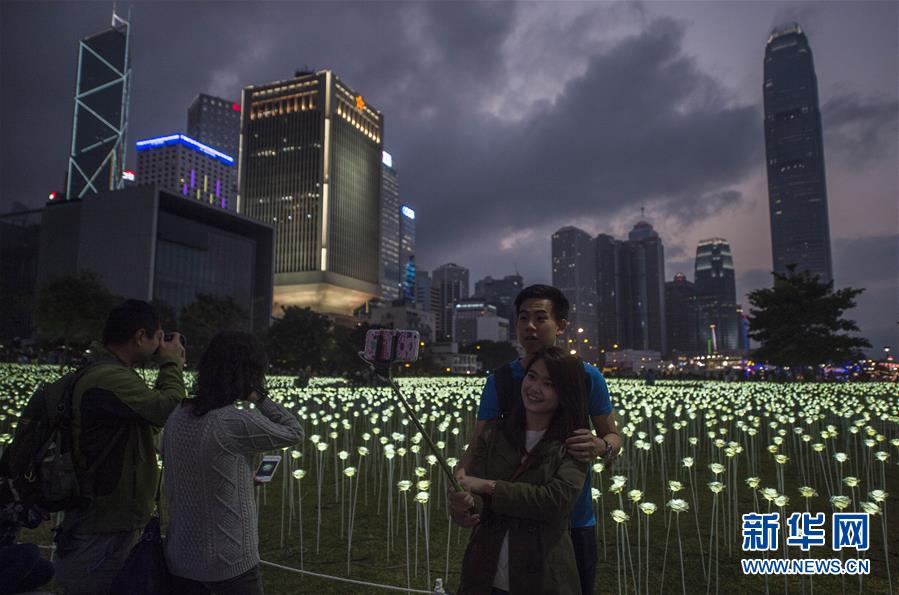 2月13日,市民在參觀玫瑰花燈。 當(dāng)日,來自韓國首爾的LED Rose Garden大型公共展覽亮相香港。25000朵LED白玫瑰花燈在中環(huán)海濱展出,在情人節(jié)即將到來之際點亮維港,營造出浪漫甜蜜的氛圍。新華社記者 呂小煒 攝