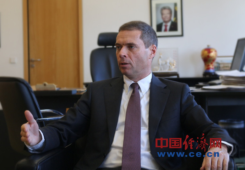 采訪結(jié)束后,中國經(jīng)濟(jì)網(wǎng)記者向柯慕賢介紹中國國家重點(diǎn)新聞媒體的基本情況??釔坶L跑的柯慕賢工作起來就像德國的汽車,馬力十足。性格穩(wěn)重的他半開玩笑地告訴記者,對(duì)德國人來說,壓力是塊寶,壓力帶來動(dòng)力。中國經(jīng)濟(jì)網(wǎng)記者 劉若星 攝