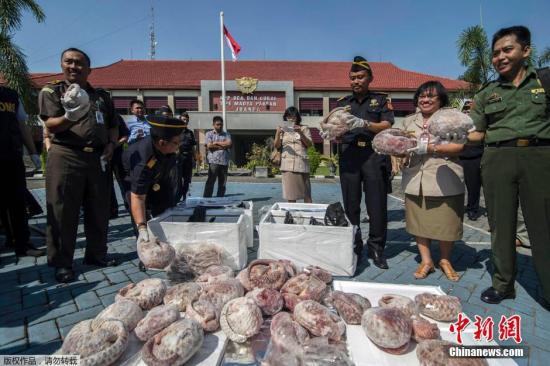 資料圖:當?shù)貢r間2015年7月8日,印尼泗水,印尼海關(guān)官員查獲一批1.3噸將被運往新加坡的冷凍穿山甲并焚燒銷毀。