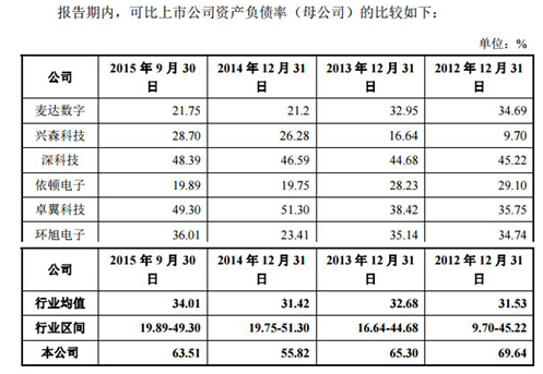 另外,易德龍的流動比率近兩年雖略有上升,但仍處于非常低的水平,截至2015年9月末只有1.05,遠低于招股書給出的同行業(yè)上市公司平均水平的2.1;速動比率也僅0.79,而同行業(yè)上市公司均值高達1.85。