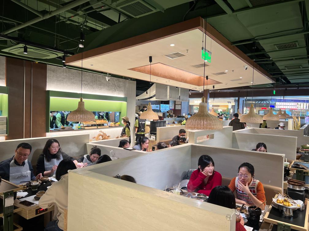 臨近跨年零點,山緩緩餐廳山西首店還有一些顧客在排隊候餐,期待嘗鮮“山野風(fēng)”火鍋。山緩緩品牌北區(qū)運營總監(jiān)王志剛說:“跨年當(dāng)日我們店的營收額突破8萬元?!辈惋嬙谛嘛L(fēng)格和新體驗上迭代升級,區(qū)域首店也更能激發(fā)消費者熱情。