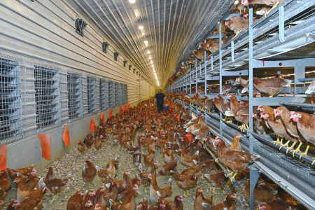 偏關縣坐落于我省西北部冷涼山區(qū),空氣清新、水源干凈、土壤優(yōu)質,這實打實的“生態(tài)家底”為優(yōu)質蛋品孕育提供了天然溫床,永奧生態(tài)農業(yè)于2019年應時落戶偏關縣窯頭鄉(xiāng)張家山村,建起高標準規(guī)?;腔\養(yǎng)蛋雞養(yǎng)殖基地——70畝蛋雞農場里,20萬只蛋雞正享受著立體棲架式散養(yǎng)系統(tǒng)帶來的“自由生活”。養(yǎng)殖基地內采食、飲水、糞便處理全流程自動化,環(huán)境控制系統(tǒng)精準調控溫濕度,蛋雞享有寬敞的活動空間,可自由覓食、沙浴,飼料則以當?shù)厥a的雜糧副產品為主。“雞群心情好,產的蛋自然優(yōu)質。”公司總經理劉開永笑著說。