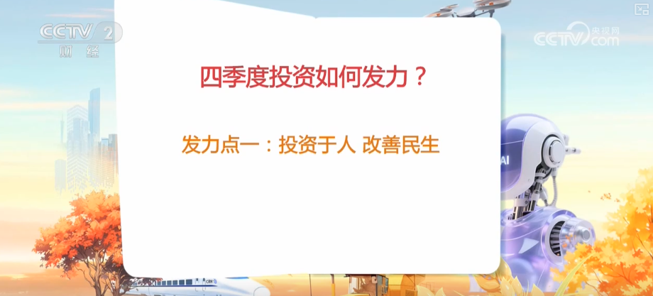 國家信息中心經濟預測部產業(yè)經濟研究室主任魏琪嘉介紹,四季度整個投資的重點領域,很多集中于民生項目建設方面,包括城市更新改造,地下管廊改造,包括停車場建設以及高標準農田等,這些事關民生的一些重點的領域,實現(xiàn)這種投資于物與投資于人的這種高效協(xié)同,更多的投資于人。