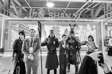 第八屆中國(guó)國(guó)際進(jìn)口博覽會(huì)山西展廳前,與熱門IP人物互動(dòng)合影的觀眾絡(luò)繹不絕。