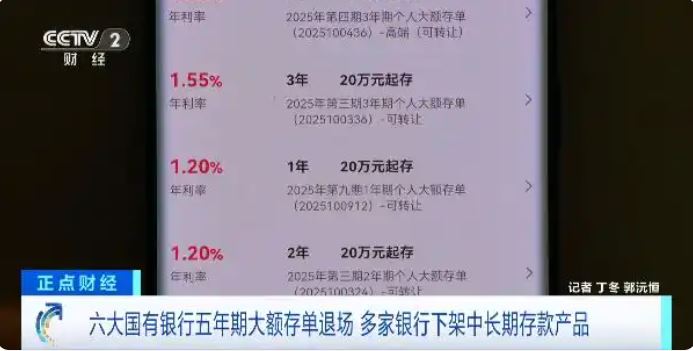 記者查詢工、農(nóng)、中、建、交、郵儲六大國有銀行的App發(fā)現(xiàn),五年期大額存單已不顯示,三年期相關(guān)產(chǎn)品的利率普遍降到1.5%至1.75%。此外,部分中小銀行也開始密集調(diào)整存款業(yè)務(wù)。梅州客商銀行近期公告已下架五年期定期存款產(chǎn)品,億聯(lián)銀行等機構(gòu)App也已不顯示五年期大額存單。