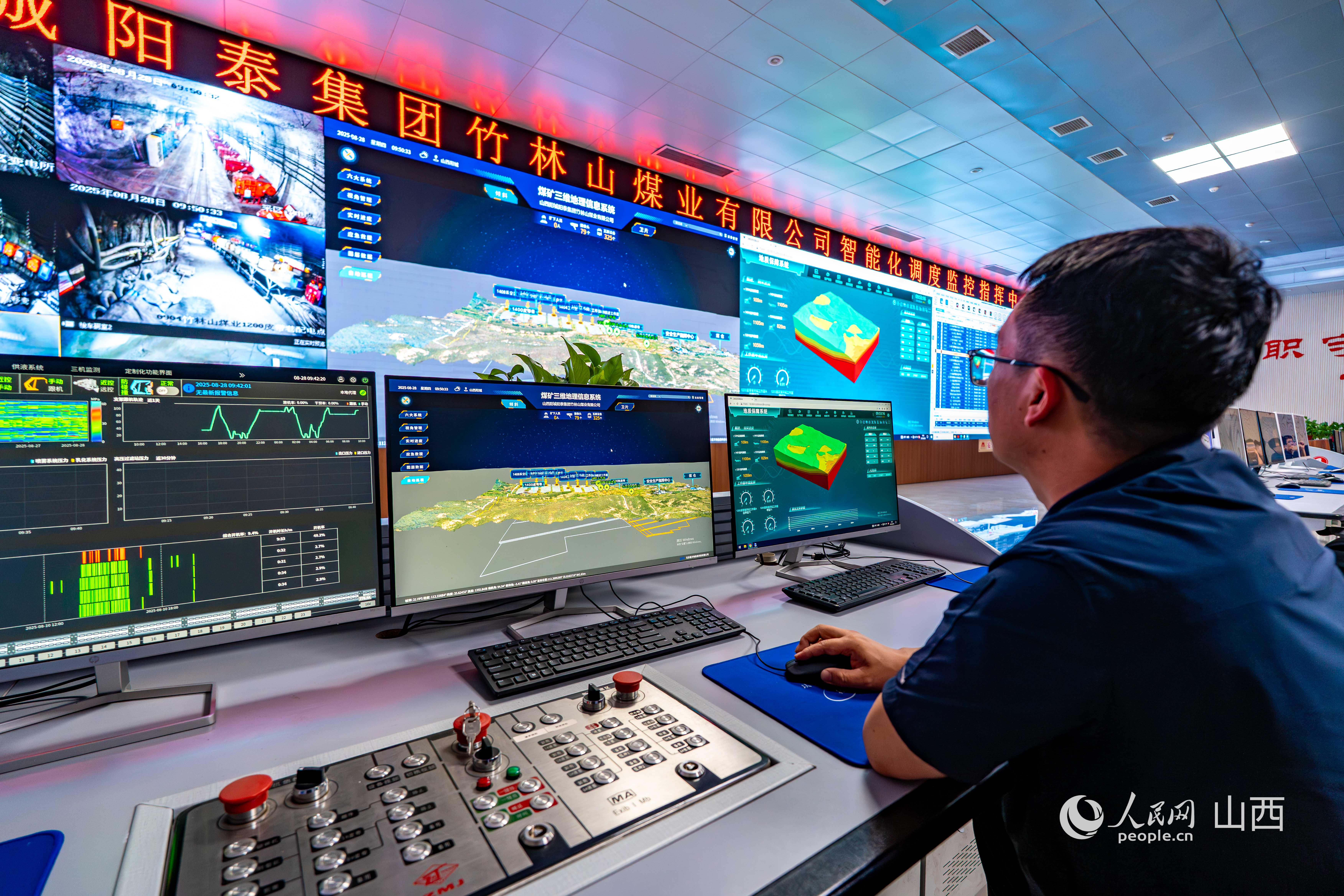 陽泰集團竹林山煤業(yè)有限公司智能化調度監(jiān)控指揮中心。人民網(wǎng) 馬夢迪攝