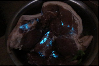 據(jù)媒體2010年12月6日報道,湖南長沙市個別市場銷售的豬肉在夜間居然能發(fā)出幽幽的藍(lán)光,這一現(xiàn)象引起廣大消費者的恐慌。湖南省獸藥飼料監(jiān)察所所長鄧云波介紹,豬肉之所以夜間發(fā)光是生豬屠宰后被發(fā)光菌所污染導(dǎo)致。