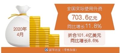本報北京5月14日電 (記者王珂)商務(wù)部14日舉行的網(wǎng)上例行新聞發(fā)布會上,商務(wù)部新聞發(fā)言人高峰介紹,4月,全國實際使用外資703.6億元,同比增長11.8%。