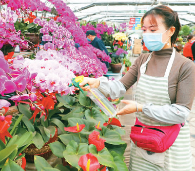 新疆烏魯木齊明珠花卉市場(chǎng)內(nèi)的商戶開門迎客。圖為市場(chǎng)一角。張秀科攝(人民視覺)