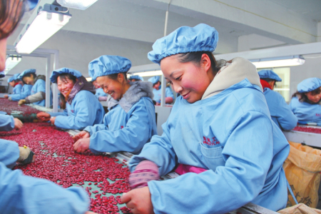 “這是我們公司最暢銷的紅蕓豆罐頭,即開即食,顆粒碩大,色澤紅艷,很受北京、上海等大城市白領(lǐng)歡迎?!痹卺硩咕G祥源生態(tài)農(nóng)業(yè)有限公司成品車間,總經(jīng)理呂杰邊走邊介紹,紅蕓豆蛋白質(zhì)含量豐富,氨基酸種類齊全,特別是含有兒童生長發(fā)育所需組氨酸,是一款能提供較全面營養(yǎng)的理想食品。