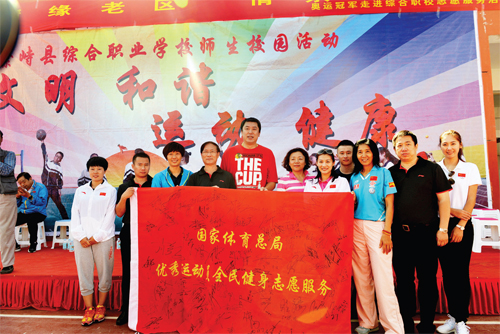 圖為體育健兒與繁峙縣活動(dòng)現(xiàn)場(chǎng)的同學(xué)們合影留念。