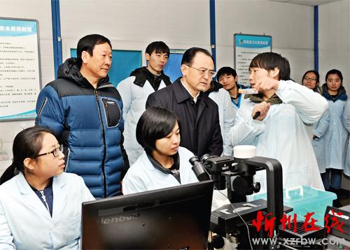 圖為市委書記李俊明在開發(fā)區(qū)新入駐正在建設中的山西培森生物制品公司調(diào)研。