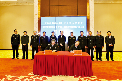 為進一步貫徹落實省委省政府《關(guān)于全面擴大開放的意見》,市政府和山西出入境檢驗檢疫局本著“合作、服務(wù)、促進、發(fā)展”的原則,經(jīng)認(rèn)真協(xié)商,就發(fā)揮各自職能優(yōu)勢,促進農(nóng)產(chǎn)品擴大出口、創(chuàng)建法蘭出口質(zhì)量安全示范區(qū)以及支持五臺山機場航空口岸臨時對外開放等方面達(dá)成共識,建立合作機制,促進我市對外開放和外向型經(jīng)濟發(fā)展,助力脫貧攻堅。具體合作事項包括:一、促進農(nóng)產(chǎn)品擴大出口。確定重點幫扶產(chǎn)業(yè),創(chuàng)建出口食品農(nóng)產(chǎn)品質(zhì)量安全示范區(qū),培育出口企業(yè),打造知名品牌,拓展國際市場。二、助推出口工業(yè)品質(zhì)量提升。推動質(zhì)量品牌提升,推進工業(yè)產(chǎn)品“三同”工程,加強國外技術(shù)性貿(mào)易措施應(yīng)對,強化公共檢測技術(shù)服務(wù)。三、支持五臺山機場航空口岸臨時對外開放。全力支持五臺山機場對外開放口岸平臺建設(shè),科學(xué)規(guī)劃和建設(shè)五臺山機場口岸檢驗檢疫技術(shù)查驗設(shè)施,做好口岸核心能力建設(shè)和動植物檢疫規(guī)范化建設(shè)各項工作,防范國外人類傳染病和動植物疫情疫病傳入,保障國門生物安全。