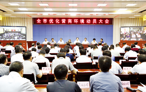 全市優(yōu)化營商環(huán)境動員大會現(xiàn)場。趙菁 攝