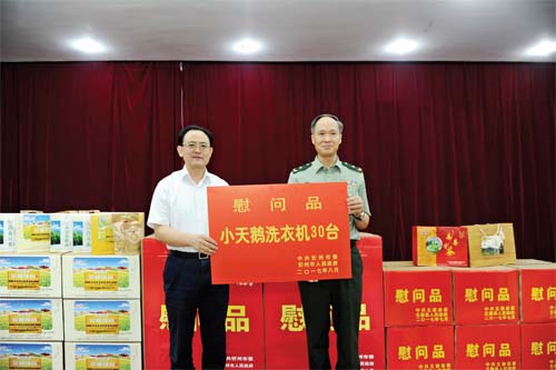 市委副書記、市長(zhǎng)鄭連生慰問(wèn)市公安消防支隊(duì)官兵。本報(bào)記者 馮曉磊 攝 本報(bào)訊 在中國(guó)人民解放軍建軍90周年之際,市委書記李俊明,市委副書記、市長(zhǎng)鄭連生,市委副書記王珍,市人大常委會(huì)主任賈雪峰,市政協(xié)主席劉鋼柱分別率慰問(wèn)團(tuán),帶著全市人民的深情厚意,走訪慰問(wèn)駐忻部隊(duì)和武警官兵,向全體官兵致以親切慰問(wèn)和節(jié)日祝賀。 7月28日,以市委書記李俊明為團(tuán)長(zhǎng)的慰問(wèn)團(tuán)慰問(wèn)駐忻某部,祝部隊(duì)官兵節(jié)日快樂(lè),并贈(zèng)送慰問(wèn)品。軍地領(lǐng)導(dǎo)共同學(xué)習(xí)了習(xí)總書記視察山西重要講話精神,參觀了軍史館,就軍地共同推進(jìn)雙擁工作向縱深發(fā)展進(jìn)行了深入交流。市領(lǐng)導(dǎo)陳義青、崔建新、王志東、程興利、高志偉一同慰問(wèn)。 李俊明在座談時(shí)首先祝部隊(duì)官兵建軍節(jié)快樂(lè)。他說(shuō),不久前,習(xí)總書記視察山西,并專程到部隊(duì)視察,發(fā)表了重要講話。當(dāng)前,全市上下正在深入學(xué)習(xí)習(xí)總書記視察山西重要講話精神,以講話精神為指引,深入推進(jìn)改革發(fā)展穩(wěn)定各項(xiàng)工作開(kāi)展。市縣黨委政府將一如既往主動(dòng)服務(wù)保障部隊(duì)的建設(shè)發(fā)展,希望軍地雙方深入推進(jìn)軍民深度融合發(fā)展,在精準(zhǔn)扶貧、精準(zhǔn)脫貧項(xiàng)目上深入合作,真正走出新路子,創(chuàng)出新業(yè)績(jī),向黨中央交好答卷。 部隊(duì)主官表示,前不久習(xí)主席專程到部隊(duì)視察,對(duì)部隊(duì)取得的巨大成就給予充分肯定,全體官兵很受鼓舞。部隊(duì)生在地方、建在地方、長(zhǎng)在地方,部隊(duì)取得的成就飽含了駐地市縣黨委政府的關(guān)心,部隊(duì)建設(shè)發(fā)展得到了駐地人民群眾的大力支持。當(dāng)前部隊(duì)上下正在深入學(xué)習(xí)習(xí)主席視察講話精神,全體官兵將牢記習(xí)主席指示,將地方的關(guān)心關(guān)懷轉(zhuǎn)化為動(dòng)力,全面打造王牌部隊(duì),始終以回報(bào)第二故鄉(xiāng)、造福駐地人民為己任,積極參加地方經(jīng)濟(jì)社會(huì)建設(shè),義不容辭地承擔(dān)急難險(xiǎn)重任務(wù),積極推進(jìn)軍民融合發(fā)展和雙擁共建工作,在精準(zhǔn)扶貧、精準(zhǔn)脫貧方面發(fā)揮作用,廣泛開(kāi)展軍隊(duì)助學(xué)、援醫(yī)送藥等活動(dòng),積極為地方經(jīng)濟(jì)社會(huì)建設(shè)作出貢獻(xiàn)。 7月28日,以市委副書記、市長(zhǎng)鄭連生為團(tuán)長(zhǎng)的慰問(wèn)團(tuán)慰問(wèn)駐忻某部和忻州市公安消防支隊(duì),為廣大官兵送去節(jié)日的祝賀,共敘軍民魚水深情。市領(lǐng)導(dǎo)王建廷及市政府秘書長(zhǎng)郭寶厚一同慰問(wèn)。 在駐忻某部,鄭連生了解了部隊(duì)建設(shè)、安全保衛(wèi)、執(zhí)勤救援和官兵的工作生活等情況,對(duì)部隊(duì)積極參與和支持忻州經(jīng)濟(jì)社會(huì)建設(shè)、著力維護(hù)社會(huì)穩(wěn)定作出的貢獻(xiàn)表示衷心感謝。他表示,地方黨委政府將一如既往地關(guān)心駐忻部隊(duì),繼續(xù)做好擁軍優(yōu)屬工作,把部隊(duì)的事情當(dāng)作地方的事情來(lái)辦,為部隊(duì)提供更多的服務(wù)和保障,幫助部隊(duì)解決困難和問(wèn)題。希望駐忻官兵今后能繼續(xù)關(guān)心忻州、支持忻州,共同建設(shè)好忻州。 駐忻某部官兵表示,部隊(duì)全面建設(shè)離不開(kāi)地方和群眾的支持,忻州市委、市政府大力支持部隊(duì)?wèi)?zhàn)備訓(xùn)練和各項(xiàng)活動(dòng),安置復(fù)轉(zhuǎn)軍人,幫助解決家屬就業(yè)、子女入學(xué)等困難和問(wèn)題,解決了部隊(duì)的后顧之憂,體現(xiàn)了濃厚的擁軍情懷。部隊(duì)將進(jìn)一步加強(qiáng)軍地雙方的溝通合作,積極維護(hù)安全穩(wěn)定的發(fā)展環(huán)境,以實(shí)際行動(dòng)支持忻州經(jīng)濟(jì)社會(huì)發(fā)展。 在忻州市公安消防支隊(duì),鄭連生詳細(xì)了解火災(zāi)撲救、火災(zāi)隱患排查和消除、搶險(xiǎn)救援等情況,感謝消防官兵為忻州市的消防安全工作作出的貢獻(xiàn)。他希望消防官兵繼續(xù)發(fā)揚(yáng)能打勝仗、善打勝仗的傳統(tǒng),苦練本領(lǐng),提升戰(zhàn)斗水平,為忻州經(jīng)濟(jì)社會(huì)發(fā)展提供強(qiáng)有力的安全保障。 廣大消防官兵表示,決不辜負(fù)市委、市政府和人民群眾的期望,要不斷提高防火、滅火和搶險(xiǎn)救援水平,以適應(yīng)當(dāng)前經(jīng)濟(jì)社會(huì)快速發(fā)展的新形勢(shì),加速消防事業(yè)的發(fā)展,為建設(shè)平安忻州作出新的更大的貢獻(xiàn)。 7月31日,以市委副書記王珍為團(tuán)長(zhǎng)的慰問(wèn)團(tuán)先后來(lái)到市軍隊(duì)離退休干部休養(yǎng)所和駐原平市預(yù)備役某部走訪慰問(wèn)了部隊(duì)官兵及為中國(guó)革命和建設(shè)事業(yè)作出貢獻(xiàn)的退役老軍人,向他們表示節(jié)日的祝賀,并送上慰問(wèn)品。市領(lǐng)導(dǎo)范晉昌、李德新、范建民一同慰問(wèn)。 7月27日,以市人大常委會(huì)主任賈雪峰為團(tuán)長(zhǎng)的慰問(wèn)團(tuán)先后到忻州軍分區(qū)、駐代縣某部和駐定襄某部,對(duì)部隊(duì)官兵進(jìn)行了慰問(wèn),為他們送去節(jié)日的問(wèn)候