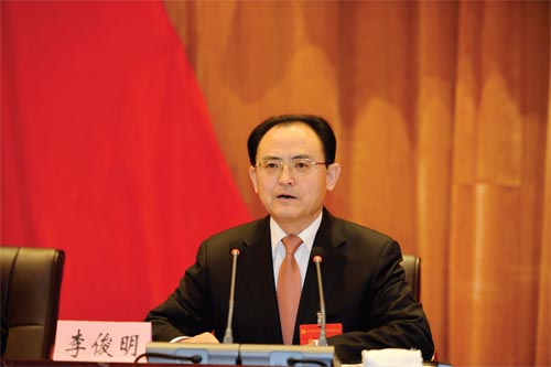 11月13日,市委書記李俊明在中共忻州市委四屆四次全體會議上講話。本報記者 宮愛文 攝