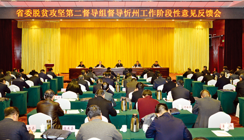 反饋會上,王德貴對忻州市脫貧攻堅工作給予充分肯定。他指出,忻州市用習(xí)總書記系列重要講話精神統(tǒng)一思想、武裝頭腦、凝聚共識,認真貫徹落實黨中央、國務(wù)院和省委、省政府對脫貧攻堅的重大決策部署,特別是以習(xí)總書記視察山西為契機,深入實施“1661”發(fā)展戰(zhàn)略和“3659”脫貧攻堅策略,堅持精準扶貧和精準脫貧方略,全市橫向到邊、縱向到底的脫貧攻堅格局基本形成,脫貧攻堅大勢向好、上下同心、氛圍濃厚,出臺了新政策、采取了硬措施和可追溯機制,呈現(xiàn)出新氣象、新面貌、新變化和新亮點。針對督導(dǎo)中發(fā)現(xiàn)的問題和不足,王德貴要求,要加強黨建引領(lǐng),進一步提高政治站位;堅持全面從嚴治黨,狠抓作風(fēng)建設(shè);堅持以人民為中心的發(fā)展思想,激發(fā)群眾的內(nèi)生動力;強化責(zé)任擔(dān)當(dāng),嚴肅追責(zé)問責(zé),嚴格落實整改工作。要在較真上下功夫,在精準上下功夫,建立健全工作臺賬,嚴格規(guī)范問題、責(zé)任、整改清單,及時報告整改結(jié)果。下一步,建議在今后的工作中進一步增加對主體責(zé)任和工作責(zé)任的考核內(nèi)涵,細化量化考核內(nèi)容。希望從政治高度、政策廣度、調(diào)研深度、工作態(tài)度、措施力度、作風(fēng)實度、業(yè)務(wù)精度、干群親度、較真嚴度、履職優(yōu)度十個維度建立可量化的考核體系,為全省提供范本。希望思想認識上重視再重視、領(lǐng)導(dǎo)責(zé)任上壓實再壓實,政策措施上精準再精準,工作作風(fēng)上過硬再過硬,扎扎實實做好當(dāng)前的工作,確保今年脫貧攻堅再戰(zhàn)再勝。