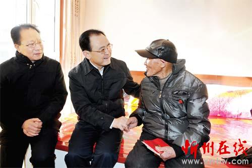 在看望1926年出生、1948年入黨的忻府區(qū)西張鄉(xiāng)東張村老黨員張根明時(shí),李俊明說(shuō),老黨員曾為革命、建設(shè)和改革事業(yè)貢獻(xiàn)過(guò)青春、奉獻(xiàn)過(guò)力量,是黨和國(guó)家的寶貴財(cái)富,黨和人民不會(huì)忘記你們,市委始終牽掛著你們。全市各級(jí)一定要特別關(guān)注,千方百計(jì)地幫助老同志解決實(shí)際困難和問(wèn)題,讓老同志時(shí)刻感受到黨和政府的關(guān)心與關(guān)懷。黨員退伍軍人李貴明在部隊(duì)期間戰(zhàn)績(jī)顯著,曾榮立二等功一次、兩次受到嘉獎(jiǎng)。1996年下崗后,李貴明自費(fèi)學(xué)習(xí)廚藝謀出路,從未向政府提任何要求。李俊明了解其參軍復(fù)員及家庭子女情況后,對(duì)他在各種情況下都能充分發(fā)揮共產(chǎn)黨員的先鋒模范作用表示贊賞。要求政府部門(mén)全力服務(wù)好退伍軍人,勉勵(lì)李貴明在政府的幫助下繼續(xù)奮斗,不忘初心,發(fā)揚(yáng)革命傳統(tǒng),在新時(shí)代三大攻堅(jiān)戰(zhàn)中再立新功。在慰問(wèn)六級(jí)殘疾軍人張玉根、建檔立卡貧困戶(hù)李成緒和特困職工左衛(wèi)忠時(shí),李俊明將米面油、對(duì)聯(lián)等慰問(wèn)品送到他們家中,送上黨和政府的親切關(guān)懷和新春祝福。他仔細(xì)了解他們的家庭困難原因和就業(yè)收入情況,勉勵(lì)他們堅(jiān)定信心,在黨委、政府以及社會(huì)各界的幫助下,努力克服困難,樂(lè)觀(guān)面對(duì)生活,過(guò)上幸福生活。他要求全市各級(jí)各部門(mén)一定要高度關(guān)注民生,關(guān)心困難群眾的生產(chǎn)生活狀況,及時(shí)幫助解決困難,讓他們充分感受到黨和政府及社會(huì)主義大家庭的關(guān)愛(ài)。