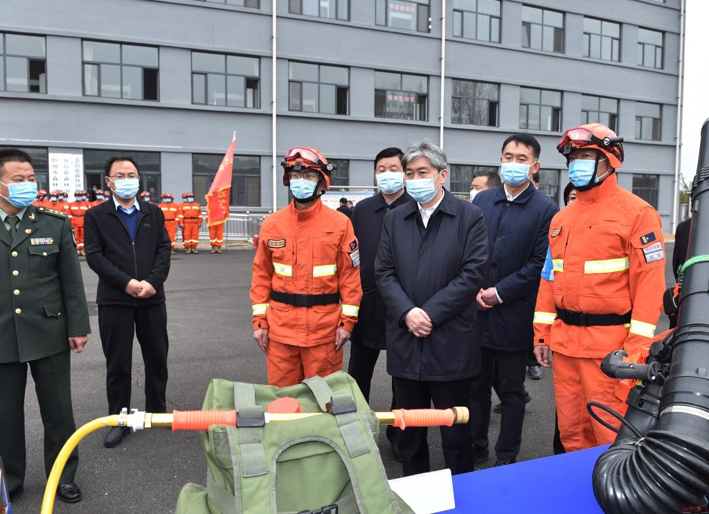 當(dāng)前已經(jīng)進(jìn)入森林防火特險(xiǎn)期,在內(nèi)蒙古森林消防總隊(duì)指戰(zhàn)員駐防五臺(tái)縣東雷鄉(xiāng)應(yīng)急救援訓(xùn)練基地,朱曉東專程慰問(wèn)指戰(zhàn)員并檢查應(yīng)急物資儲(chǔ)備情況。他希望森防總隊(duì)保持高度臨戰(zhàn)狀態(tài),發(fā)揮專業(yè)護(hù)林滅火優(yōu)勢(shì),持續(xù)強(qiáng)化應(yīng)急演練,結(jié)合五臺(tái)地形氣候?qū)嶋H,以實(shí)戰(zhàn)化演練為導(dǎo)向,完善應(yīng)急預(yù)案,練就過(guò)硬本領(lǐng);同時(shí)要發(fā)揮所長(zhǎng),把好經(jīng)驗(yàn)好辦法傳授給地方應(yīng)急隊(duì)伍,幫助地方打造有生力量。市縣相關(guān)部門(mén)要全方位服務(wù)保障到位、學(xué)習(xí)借鑒到位,通力合作堅(jiān)決打贏護(hù)林防火攻堅(jiān)戰(zhàn)。在定襄縣林業(yè)局聽(tīng)取森林防火預(yù)警監(jiān)控系統(tǒng)運(yùn)行情況后,朱曉東指出,護(hù)林防火重在防,要堅(jiān)持人防加技防,把人員力量布設(shè)到位,切實(shí)把好入山進(jìn)林關(guān)卡,強(qiáng)化檢查督導(dǎo),堅(jiān)決禁止火源上山,確保實(shí)現(xiàn)火險(xiǎn)火情“打早打小打了”。