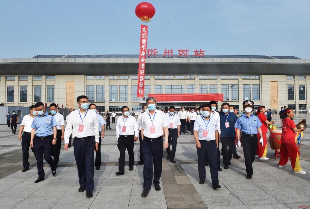 儀式結(jié)束后,朱曉東、李建國等一行共同乘坐以“錦繡太原·康養(yǎng)忻州”為主題包裝打造、冠名“太忻號”的D5306次動車組列車返回忻州。
