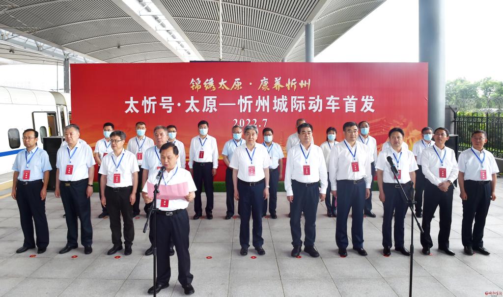 7月4日,太忻號·太原-忻州城際動車首發(fā)儀式在太原南站舉行。忻州市委書記朱曉東出席儀式并宣布“太忻號”城際動車首發(fā),太原市市長張新偉,太原鐵路局集團(tuán)公司總經(jīng)理陸勇出席儀式并致辭,忻州市市長李建國主持儀式,省發(fā)改委副主任、省太忻經(jīng)濟(jì)一體化發(fā)展促進(jìn)中心主任張翔出席儀式,太原市委副書記、政法委書記張韜,忻州市委副書記、政法委書記郭奔勝,忻州市人大常委會主任王珍,忻州市政協(xié)主席范建民,省交通運(yùn)輸廳副廳長郭丙福,太原鐵路局集團(tuán)公司副總經(jīng)理劉楓,太原市領(lǐng)導(dǎo)盧秋生、楊俊民、薛維柱,忻州市領(lǐng)導(dǎo)張文偉、溫建軍、張宇光、賈玲香、王建峰,忻州師范學(xué)院黨委書記王軍及忻州市政府秘書長張艮生出席。