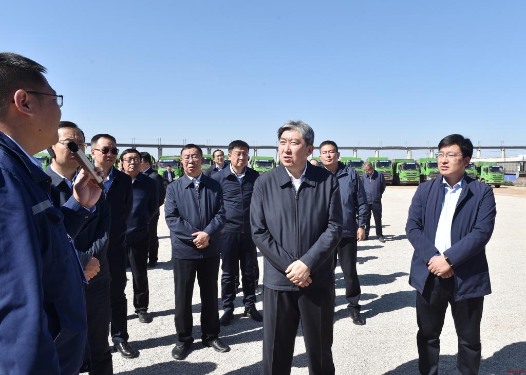 在龍泉鎮(zhèn)西口子村觀摩檢查國能朔黃鐵路神池南焊軌基地項(xiàng)目建設(shè)情況。馮曉磊 攝