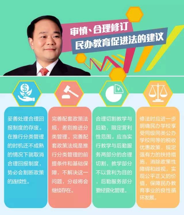 4、修法時應進一步明確民辦學校享受同級同類公辦學校同等的稅收優(yōu)惠政策,規(guī)定強有力的扶持措施,消除政策性障礙和歧視,實現(xiàn)公平正義的價值,保障民辦教育事業(yè)的良性循環(huán)發(fā)展。