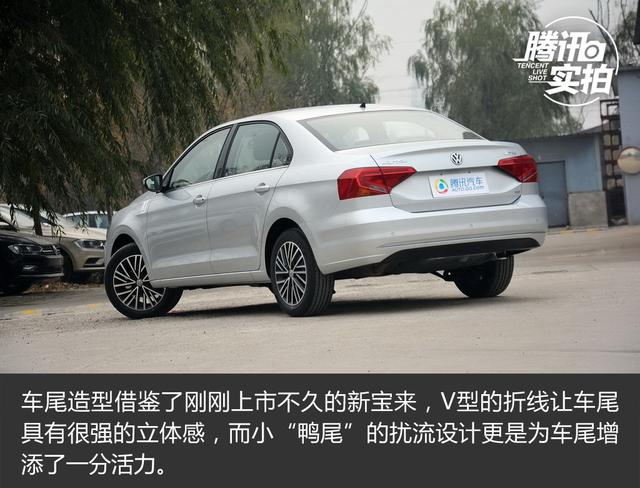 車身側(cè)面沒有做太大改變,延續(xù)了老款車型簡單流暢的線條感。后視鏡的造型也更富棱角,側(cè)轉(zhuǎn)向燈從翼子板移至后視鏡,同時采用了LED光源。門把手采用了與車身同色的設(shè)計,上方增加的鍍鉻裝飾條恰到好處。雙色多幅輪轂是一大亮點,造型動感時尚。采用韓泰KINERGY EX輪胎,尺寸為195/55 R16。制動系統(tǒng)為前輪通風(fēng)盤式,后輪鼓式。車尾造型借鑒了剛剛上市不久的新寶來,V型的折線讓車尾具有很強(qiáng)的立體感,而小“鴨尾”的擾流設(shè)計更是為車尾增添了一分活力。立體造型的尾燈與車尾的折線融為一體,內(nèi)部折線的造型,具有很高的辨識度。車尾的數(shù)字180代表這臺車裝配的是1.5L自然吸氣發(fā)動機(jī)。