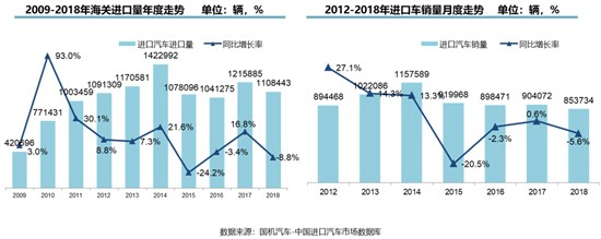 此外,2018年,平行進口汽車銷量出現(xiàn)了5年來的首次下滑,且市場波動明顯。2018年,平行進口車銷量占進口車總銷量的12.6%,達13.97萬輛,同比下滑18.6%,下滑幅度遠超進口車市場整體表現(xiàn)。