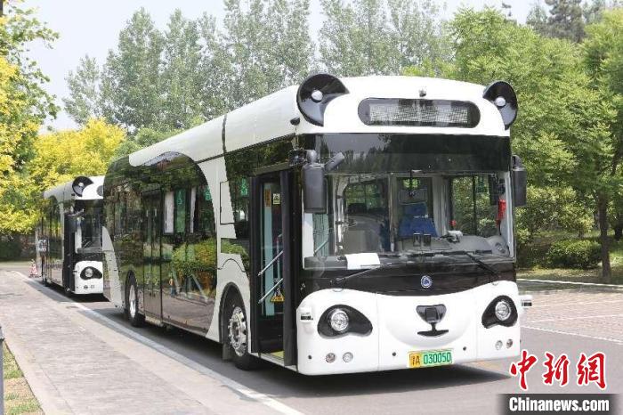 “熊貓智能公交車”在中新天津生態(tài)城上路運行。 深蘭科技供圖