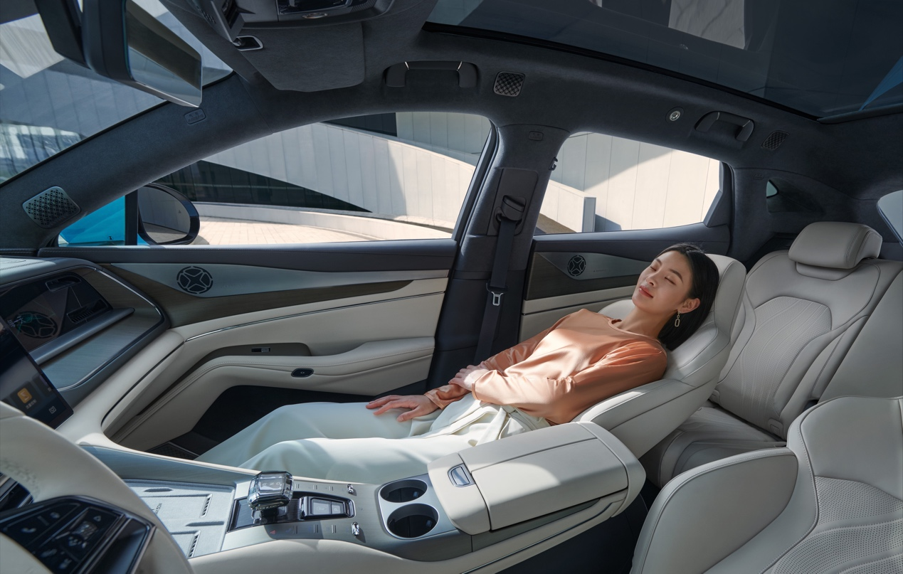 舒適豪華再進(jìn)化,雙排超舒適座艙座座皆是VIP。作為智能豪華超舒適大五座電動(dòng)SUV,全新騰勢(shì)N7座座皆舒適,升級(jí)了電動(dòng)四向調(diào)節(jié)方向盤、自動(dòng)防眩目外后視鏡、流媒體內(nèi)后視鏡,即使下雨,后方路況也清晰可見,結(jié)合5D云感人體工學(xué)座椅,為駕駛者帶來(lái)舒心、舒適的駕駛感受。而副駕則通過(guò)娛樂(lè)屏、柔光化妝鏡、座椅加熱、2擋吸風(fēng)式通風(fēng)、10點(diǎn)式按摩等配置,打造出女王專屬寵愛副駕體驗(yàn)。后排座椅舒享待遇同樣提升,新增電動(dòng)靠背調(diào)節(jié)、2擋吸風(fēng)式通風(fēng)、10點(diǎn)式按摩及仰望同款后排扶手屏,夏天打開座椅通風(fēng)無(wú)吹風(fēng)不適感,輕觸扶手屏開啟一場(chǎng)按摩療愈,加上CTB技術(shù)帶來(lái)的寬大空間優(yōu)勢(shì),使全新騰勢(shì)N7的尊享待遇與百萬(wàn)D級(jí)行政豪車相當(dāng)。