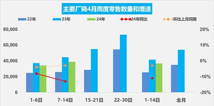4月前兩周主要廠商零售銷量。數(shù)據(jù)來(lái)源:乘聯(lián)會(huì)
