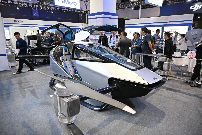 9月6日,觀眾在2024低空經(jīng)濟發(fā)展大會創(chuàng)新成果展區(qū)了解一款電動垂直起降飛行器。新華社記者 傅天 攝