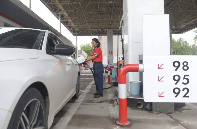 (資料圖片)一家加油站的工作人員給汽車加油。新華社發(fā)(賈敏杰 攝)