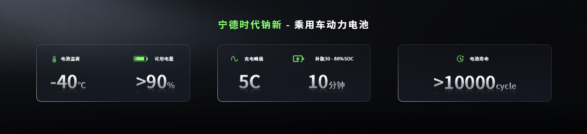 鈉新乘用車動力電池的能量密度達(dá)175Wh/kg,為當(dāng)前全球鈉電最高,比肩磷酸鐵鋰電池;支持峰值5C的充電速率和500公里續(xù)航,實現(xiàn)超1萬個循環(huán)的壽命,同時大幅降低維護(hù)成本。在安全性上,鈉新電池從材料本征層面消除電池?zé)崾Э刂械闹家蛩?,實現(xiàn)電池安全從"被動防御"到"本質(zhì)安全"的跨越式突破。