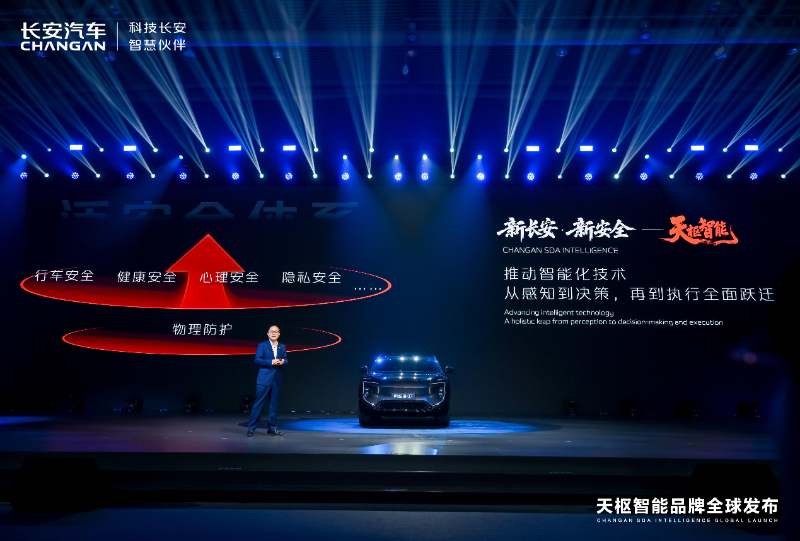 長(zhǎng)安汽車(chē)將安全理念從傳統(tǒng)狹義的物理防護(hù),逐步擴(kuò)展為涵蓋行車(chē)安全、健康安全、心理安全、隱私安全等的“泛安全”體系。這一理念全面應(yīng)用于長(zhǎng)安智能化技術(shù)開(kāi)發(fā),并逐步實(shí)現(xiàn)從感知到?jīng)Q策,再到執(zhí)行的全面躍遷,最終形成了“新長(zhǎng)安·新安全——天樞智能”品牌。