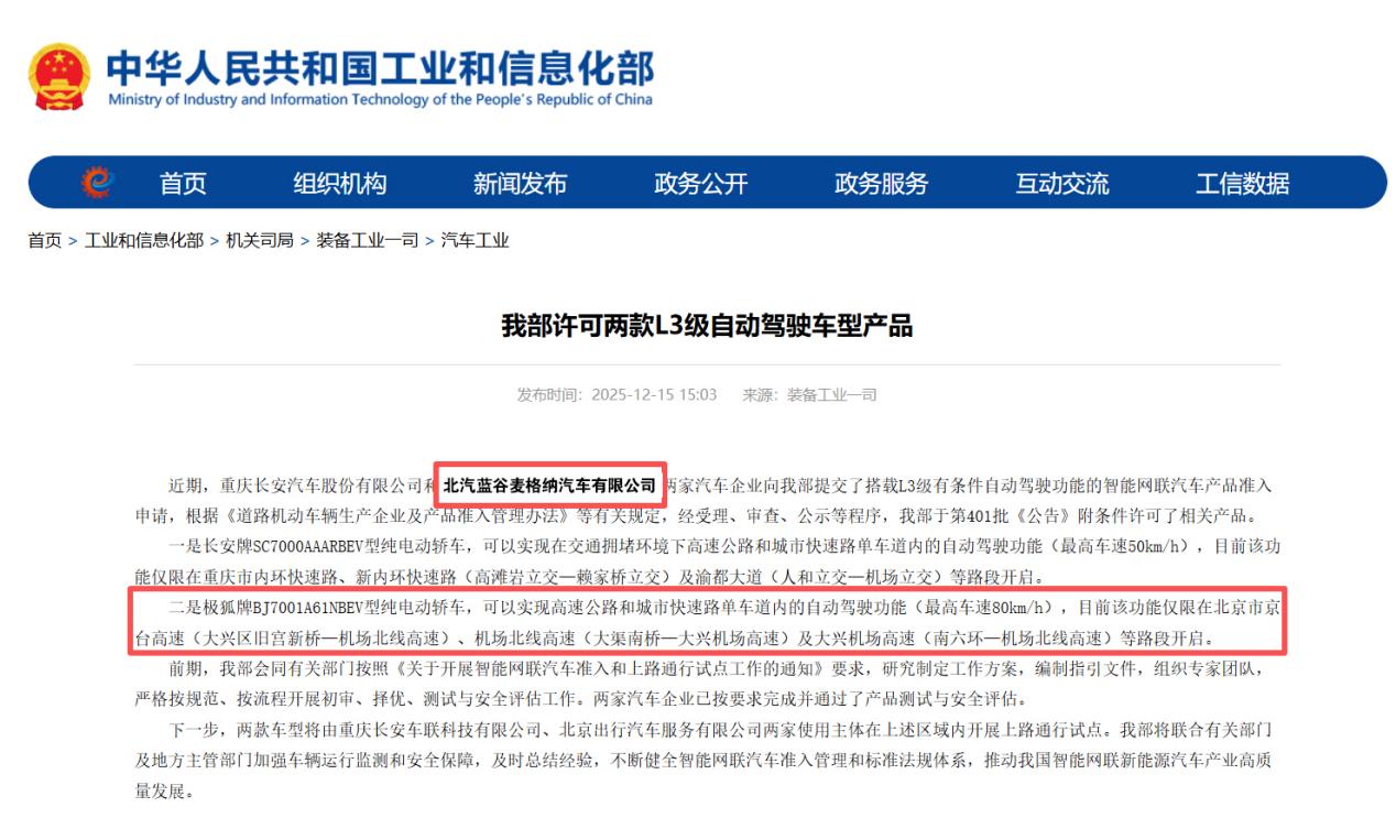 12月15日,北汽集團(tuán)旗下極狐阿爾法S(L3版)正式獲批工業(yè)和信息化部自動(dòng)駕駛車型產(chǎn)品準(zhǔn)入許可,即將在北京市限定區(qū)域內(nèi)開(kāi)展L3級(jí)有條件自動(dòng)駕駛上路通行試點(diǎn)。這標(biāo)志著我國(guó)自動(dòng)駕駛技術(shù)發(fā)展逐步走向量產(chǎn)應(yīng)用階段,也是北汽集團(tuán)在自動(dòng)駕駛領(lǐng)域從技術(shù)驗(yàn)證階段邁向量產(chǎn)應(yīng)用階段的重要里程碑。