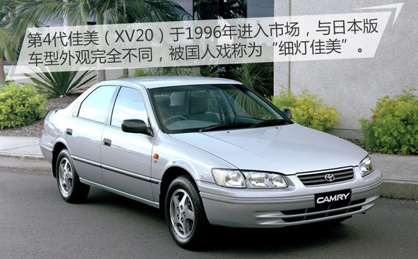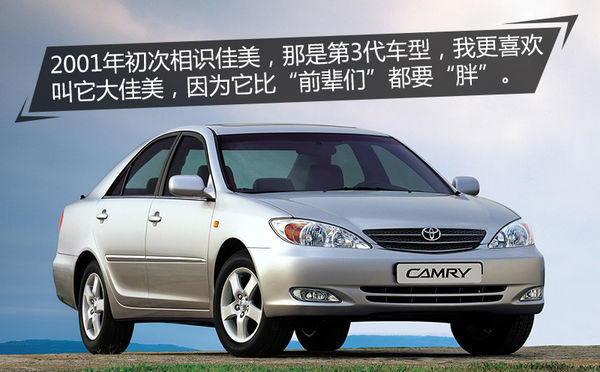 目前在售的現(xiàn)款凱美瑞入門版車型,并沒有配備VSC車型穩(wěn)定控制系統(tǒng),這對(duì)于預(yù)算有限的消費(fèi)者來說,原本可以成為購買目標(biāo)的凱美瑞,很有可能就因?yàn)檫@一個(gè)配置被篩掉了。如今,十周年紀(jì)念版實(shí)現(xiàn)了全系車型標(biāo)配VSC系統(tǒng)。 “老”佳美進(jìn)口15年聚沙成塔 說起來,筆者與凱美瑞應(yīng)該算是“老熟人”了,最初的緣分要回憶到上初中的時(shí)候,那時(shí)候凱美瑞還是進(jìn)口車,那時(shí)候他被人們稱作“佳美”。2001那年筆者在念初三(額~~一不小心暴露了年齡),姑姑家買了一輛銀灰色的豐田佳美,那時(shí)候還不太懂車,只知道能坐上30多萬的車是一件非常值得吹牛逼的事情。