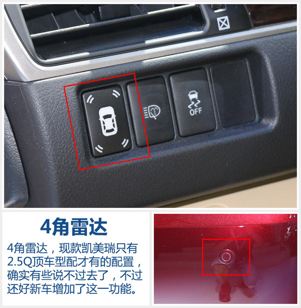 可以說新車最大的一個(gè)升級(jí)亮點(diǎn),就是增加了豐田的Smart Stop智能節(jié)油啟停系統(tǒng)。省油原本就是凱美瑞的一大特質(zhì),好比筆者的7代2.5L車型目前在平均油耗僅為9個(gè)油(北京上下班使用)。增加S&S系統(tǒng)之后,凱美瑞的油耗將進(jìn)一步下降。 值得一提的是,Toyota Smart Stop智能節(jié)油啟停系統(tǒng)相較于其他品牌的啟停技術(shù),響應(yīng)速度快,0.5秒即可重新啟動(dòng)。此外,在發(fā)動(dòng)機(jī)停止運(yùn)行狀態(tài),音響系統(tǒng)不會(huì)中斷,空調(diào)系統(tǒng)可持續(xù)供冷,保證了良好的舒適性。 四、配置升級(jí) 增雙透鏡LED大燈