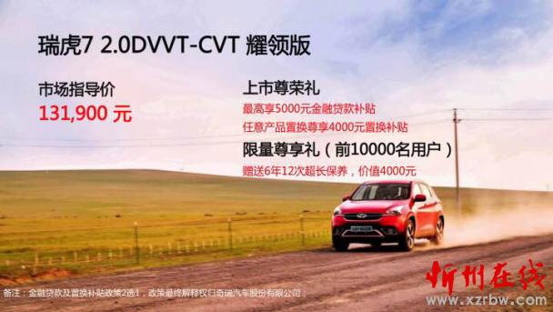 瑞虎7新增車型“耀領”上市售13.19萬元
