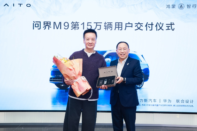 2025年1月8日,問界M9第15萬輛用戶交付儀式在北京舉行。賽力斯集團董事長(創(chuàng)始人)張興海向著名男高音歌唱家、藝術家閻維文老師交付問界M9第15萬輛新車鑰匙,共同見證了“世界級好車”問界M9開啟嶄新篇章的歷史性時刻。