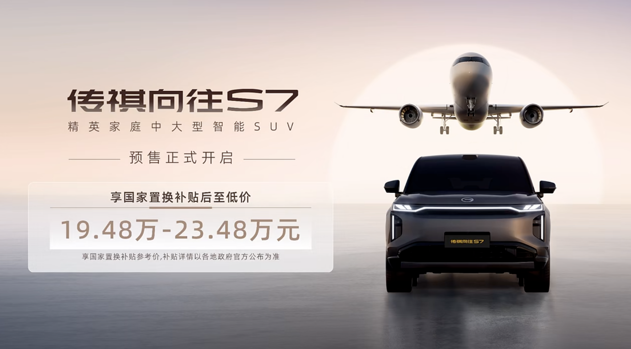 本次發(fā)布會(huì)跟C919同臺(tái)登場(chǎng)的傳祺向往S7,作為傳祺首款高階智駕車型正式開啟預(yù)售,預(yù)售價(jià)格(國(guó)補(bǔ)后)為19.48萬元-23.48萬元。作為尖兵,傳祺向往S7已經(jīng)亮劍,也意味著傳祺的向上之路正式開啟。