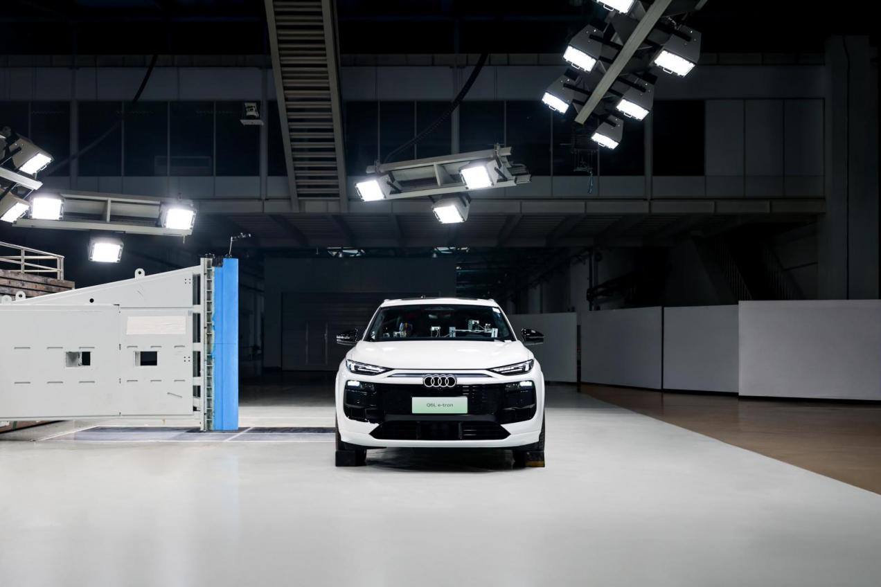 一汽奧迪Q6L e-tron碰撞前處于貨車(chē)與剛性柱體之間