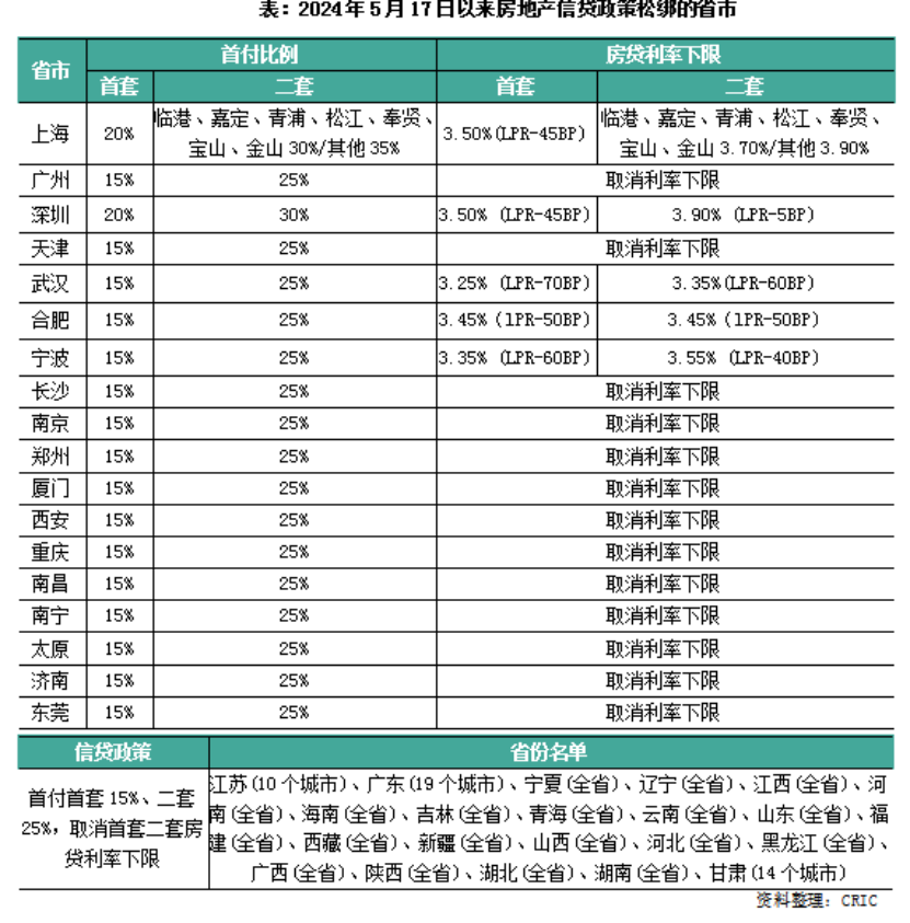 5月17日,央行將首套、二套房首付比例下限再下調(diào)5個百分點(diǎn),調(diào)整后分別為15%、25%。此后據(jù)克而瑞研究中心統(tǒng)計(jì),山東、福建、河南等超22個省份已經(jīng)落地執(zhí)行,全國超過200個城市15%首套房最低首付比例。