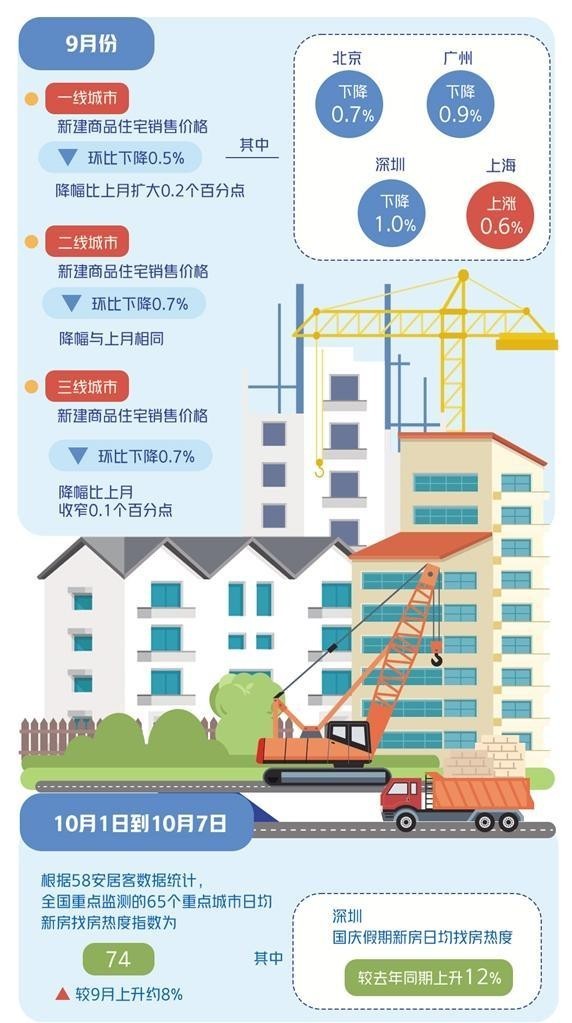 9月26日,中央政治局會(huì)議定調(diào)“要促進(jìn)房地產(chǎn)市場(chǎng)止跌回穩(wěn)”,釋放出“穩(wěn)地產(chǎn)”信號(hào)。隨后,一線城市集中優(yōu)化樓市政策,廣州全面取消限購,北京、上海、深圳優(yōu)化限購、限貸政策,北京、上海明確將及時(shí)取消普宅認(rèn)定標(biāo)準(zhǔn),深圳取消限售,上海、深圳增值稅免征年限“5改2”,帶動(dòng)國(guó)慶假期樓市熱度顯著提升。