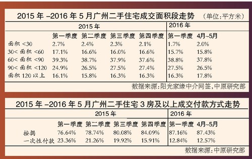 中原研究部監(jiān)測的陽光家緣數(shù)據(jù)顯示,120平方米的物業(yè)在2016年4月~5月份成交占比較第一季度提升了1.5個(gè)百分點(diǎn),對于打算生二孩的老百姓來說,一方面,人口增多,需要提前購置大房;另一方面,在低利率的時(shí)代,買房不僅可以使資產(chǎn)保值增值,對抗通脹,也能利用低利率政策減少購房成本支出。在2016年成交的3房及以上的物業(yè)付款方式來看,按揭貸款的占比呈一路走高的態(tài)勢,2016年1月~5月份占比在87%的水平,較2015年第三季度多了7個(gè)百分點(diǎn)左右。