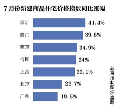 國家統(tǒng)計局?jǐn)?shù)據(jù)顯示:7月份廈門新建商品住宅價格指數(shù)較上月環(huán)比增長4.6%,較去年同比漲幅達39.6%。